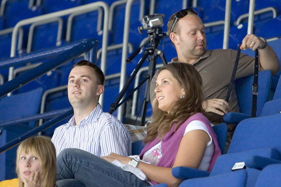 Hned od úvodu se domácí hokejisté nastěhovali do útočného pásma a už ve 2. minutě tečoval Šaffer Kloboučkovu střelu za záda chomutovského brankáře. Vzápětí měli šance i hosté, ale domácí obránci si s nimi poradili. Od 7. minuty hráli domácí přesilovku a na jejím konci měli chvíli výhodu i dvojnásobné. Během přesilovek se odehrály dvě menší potyčky, a tak se trestná lavice na obou stranách úspěšně zaplňovala. Ve 13. minutě se hrálo už opět s plným počtem hráčů, ale hokeje na ledě příliš vidět nebylo. V 15. minutě spálili domácí několik šancí, a tak udeřilo na druhé straně. Po rychlém kontru se do černého trefil Jeslínek - 1:1. Brzy nato hráli hosté svou první přesilovku a před Salfickým bylo hodně horko. Na konci 18. minuty, po vhazování před chomutovskou brankou, si žlutomodří bleskově předali kotouč kolem branky Hollého a Kloz bleskovým volejem poslal Slovan opět do vedení. V samém závěru první třetiny se do sebe ještě pustili Trefný s Hovorkou, ale na skóre se už nic nezměnilo.