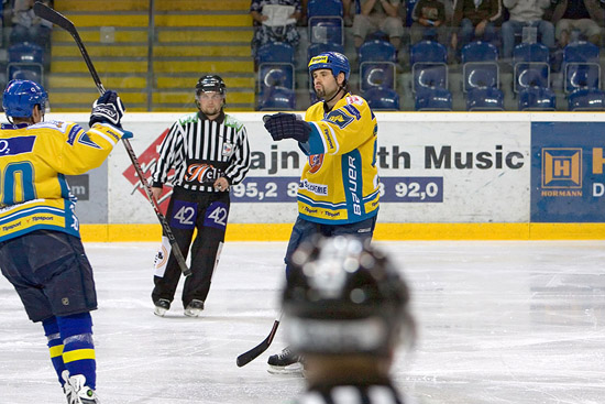 Branky a nahrávky: 2. Šaffer (Klobouček, Havlíček), 18. Kloz (Vrtek, M. Novák), 26. Čaloun (Heřman, P. Kříž), 51. Klobouček (Hovorka), 54. Vrtek - 16. Jeslínek (Charousek, Hašek), 34. Procházka, 46. Domin (Tauš). Rozhodčí: M. Novák - Hynčica, Mašek. Vyloučení: 10:11. Bez využití. Diváci: 937. Průběh utkání: 1:0, 1:1, 3:1, 3:3, 5:3.