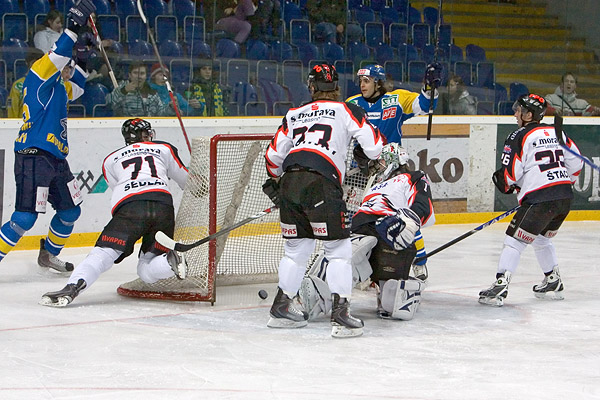 Branky a nahrávky: 15. Alinč (Šaffer, Němeček), 47. Mikulík (Sklenička, Novotný), 50. R. Pšurný (M. Pšurný, Mikulík), 56. Novotný (Mikulík, M. Pšurný) - 17. Hořava (Sedlák), 29. Morava (Hořava, Barták), 48. Padělek (TS). Rozhodčí: Zubzanda - Hynčica, Mašek. Vyloučení: 8:12, navíc Klobouček (UNL) TS a Kolafa (ZNO) 10 min. NESP. Využití: 3:1. Diváci: 2750. Střely na branku: 54:36. Průběh utkání: 1:0, 1:2, 2:2, 2:3, 4:3.