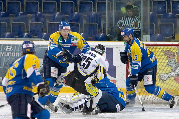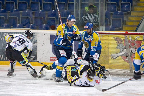 Branky a nahrávky: 8. Pazourek (Pojkar, Alinč), 35. Pojkar (Alinč, P. Kříž), 48. Trončinský (Mikulík, R. Pšurný), 56. Pazourek (Kloz, Alinč), 60. R. Pšurný (Mikulík) – 14. Boušek (Charousek, Gombár), 56. Fiala (Domin). Rozhodčí: Skoupý – Hynčica, Mašek. Vyloučení: 8:5. Využití: 1:1. V oslabení: 1:0. Diváci: 2183. Střely na branku: 48:28. Průběh utkání: 1:0, 1:1, 3:1, 3:2, 5:2.