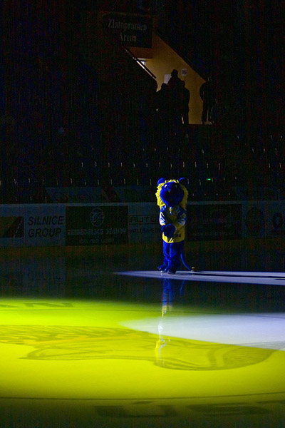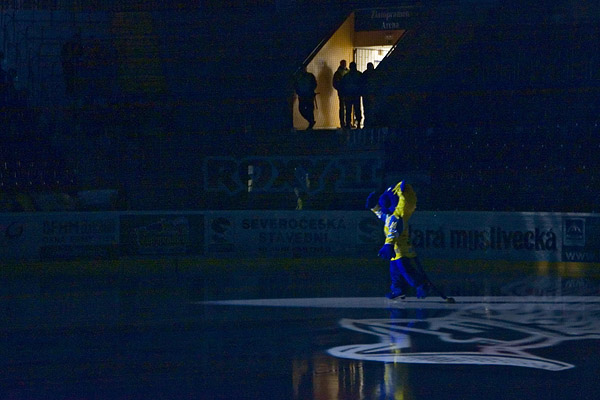 Domácí přišli hned v úvodu třetiny o možnost začít aktivně, v krátkém rozmezí se totiž provinili dva ústečtí obránci a Slovan musel řešit ošemetnou situaci tří proti pěti. Přesilovku chtěl nejprve předčasně ukončit Karlíček, střílel ale nad a proti druhému pokusu se stihl Salfický přesunout. Lvi dobře vyšachovali útočníky, obzvláště Zeman v krátkém sledu dvakrát vypíchl puk z holí soupeřů stahujících se k brance. S ranou beka Táborského si pak opět poradil domácí gólman. Brzy se situace obrátila a Lvi přitlačili Hradecké v jejich třetině. Gureň nahodil puk přesně v linii, kde ho mohl tečovat Šagát. Ten to zkusil do protipohybu Vošvrdy, hostující brankář stačil postavit do cesty kotouči svůj beton. O pár střídání později se před branku prosmýkl Janků, jeho bekhend ovšem skončil na zadním mantinelu. Rostoucí tlak nezužitkoval ani Alinč, u vzdálenější tyče měl problémy se zpracováním. Přesto se právě tato dvojice za chvíli zapsala do statistik. Alinč poslal svou přihrávku mezi dva bránící hráče, za pukem se tudy stihl prosmýknout Janků, a jakmile ho dojel, odeslal ho do horního růžku – 1:0. Střelecká forma Lvy neopustila a Hradec jim navíc situaci dost usnadnil, když je nechal před Vošvrdou zcela samotné. Klobouček poslal puk Pajičovi, jemuž nedělalo problémy vystřelit z první dostatečně přesně – 2:0. Hosté se zase snažili zlepšit svou ofenzivu, ale Ústečtí byli v obraně dostatečně pozorní, mnoho střel k Salfickému nepustili. Lvi tedy byli nadále nebezpečnějším týmem. Pazourek si dokázal vyjet až před branku, tam bylo ale příliš těsno na lepší koncovku. V přesilovce si sjel před hradeckého gólmana Gýna, Vošvrda byl na jeho střelu z první připraven, a tak první třetinu ukončila siréna za stavu 2:0.