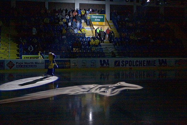 Do třetí třetiny Lvi vlétli, jako by doufali, že zápas ukončí desátou brankou. Za dvě minuty se Hradečtí zastavili v útočném pásmu jen jednou a nutno říci, že opravdu na skok. Naopak na druhé straně se pálilo ostrými, největší možnost promarnil Šagát, jemuž před brankou sjel puk z čepele. Pajičově střele po ledě zase stihl Luňák, jenž se po druhé třetině vrátil do branky, postavit do cesty beton. Postupně se ovšem začali osmělovat i hosté. Ti už neměli nic moc co ztratit, a tak začali testovat, co by na Slovan mohlo platit v příštím duelu. Kadlec se stáhl do mezikruží a pohotovou střelu namířil rovnou do nudícího se Orcta. Gólman Lvů v následujícím oslabení prokázal, že navzdory tomu, jak celý zápas mrznul, dokáže vystřihnout výborné zákroky. Z ostřelovačů se ukázal nejnebezpečnější Křetínský, jehož střelu dorážel Šejnoha, právě proti této dorážce vytáhl Orct zákrok z kategorie, na kterou se brankáři soupeře nezmohli celý zápas. Na druhou stranu Ústečtí přestali počítat s tím, že by v tomto utkání museli také bránit, a to se jim nakonec vymstilo. Kadlec se prosmýkl podél mantinelu a umístil puk přesně mezi brankáře Lvů a tyč jeho branky – 9:1. Slovan se nemínil jen tak vzdát vytoužené mety v podobě deseti puků v síti soupeře. Pajič ovšem tváří v tvář gólmanovi přestřelil. M. Pšurný zase tak dlouho vymýšlel co s pukem, až se ocitl v ostrém úhlu a už jej nedokázal usměrnit ke vzdálenější tyči. Hradečtí se zuby a nehty snažili vyhnout potupně kulatému číslu gólů ve vlastní síti a nakonec se jim to povedlo. Přesto si Slovan odnáší do dalších semifinálových klání vedení 2:0 na zápasy.