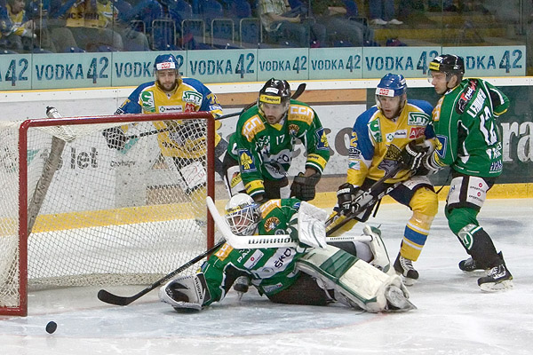 V úvodu druhé části dostali hosté poprvé výhodu přesilovky. A nezahráli ji vůbec špatně. Čtveřici hráčů ve žlutomodrém uzamkli před bránou, scházela však přesnost ve finální fázi a když se puk dostal k Orctovi, ten byl vždy na místě.
