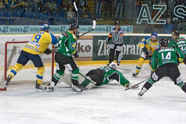 Začátek třetí části třetiny odehráli domácí převážně před brankou Schwarze, a to především díky dvěma přesilovkám. Jednou už dokonce část tribun zvedala ruce nad hlavu, ale Černý trefil jen boční síťku.