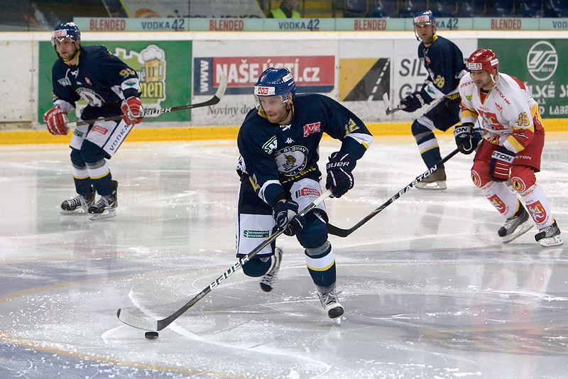 Do druhé třetiny vstoupili hosté o poznání odvážněji a 2 minuty nepustili Ústecké Lvy z obranného pásma. Jenže potom jim ujel Jiří Zeman a šikovnou střelou nad rameno brankáře poslal Ústecké do třígólového trháku. Ve 26. minutě získali výhodu přesilové hry i hosté, a těsně před návratem domácího hříšníka na led, protlačil kotouč za Orctova záda Patrik Moskal. Domácí hokejisté poté působili trochu zakřiknutě a dlouhé minuty se hrálo převážně před jejich brankou. S přibývajícími minutami tempo hry polevovalo a na ledě toho k vidění moc nebylo. Přesně 6 minut před druhou sirénou už se na to nemohl dívat nejproduktivnější hráč 1. ligy Jan Alinč a nenápadným bekhendem z vrcholu pravého kruhu dokonale překvapil Koutského - 4:1. Zbytek třetiny se dohrával už plně v režii domácího týmu.