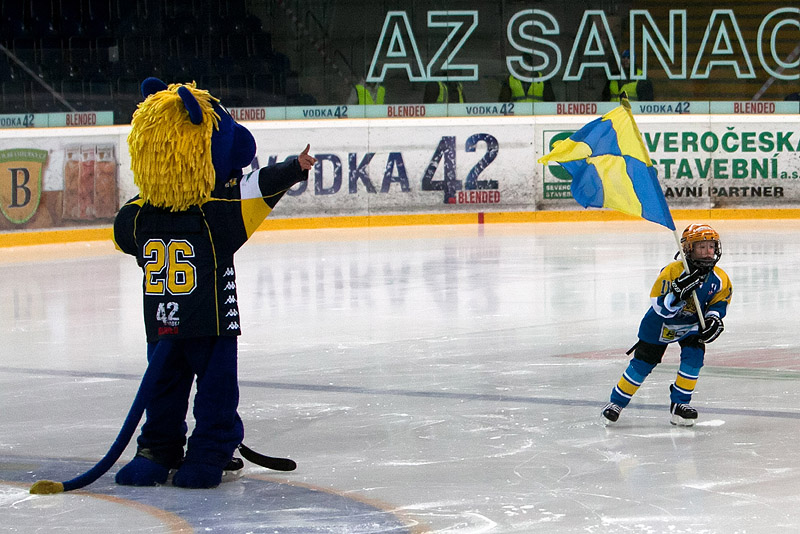 V prvních vteřinách vyzkoušel Willovu pozornost Boháč. Ten však zachytil kotouč do lapačky. Na druhé straně zase prověřil Orcta někdejší hráč Ústí, Mikulík. Branky svého protějšku pak několikrát ohrozily oba celky. V sedmé minutě utkání se na branku řítil Čermák, který byl ovšem faulovaný, a tak bylo nařízeno trestné střílení. Čermák se při něm pokusil poslat puk Willovi mezi nohy. Brankář hostí však sevřel betony k sobě a nedal ústeckému útočníkovi šanci. Nevyužitá příležitost musela Lvy mrzet, protože několik sekund po neproměněné jedinečné šanci, vstřelila Boleslav branku. Vrbata vyslal z pravého kruhu nenápadnou střelu, kterou dokázal do brány usměrnit najíždějící si MILAN MIKULÍK – 1:0. Hostujícímu týmu jakoby gól dodal energii a sebevědomí. Delší dobu totiž kroužili kolem lví klece jako supi. Když se pak domácí dostali do rychlého protiútoku, byl opět nedovoleně zadržen jeden ze žlutomodrých hráčů a rozhodčí nařídil znovu trestné střílení. Ani Lev ale nedokázal na Willa vyzrát. Zelenobílí si ve třinácté minutě zahráli i svou první přesilovku. V ní jim na skórování stačilo pouhých čtyřicet vteřin. Výborný si najížděl k bráně po pravé straně kluziště, a poslal puk na úplně volného PETRA KAFKU, který neměl problém zakončit do zcela odkryté svatyně. Ve zbytku první části se hra přelévala už jen ze strany na stranu, a do šaten se tak odcházel za stavu 0:2.