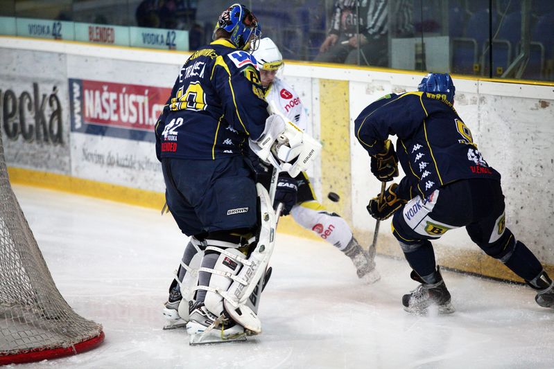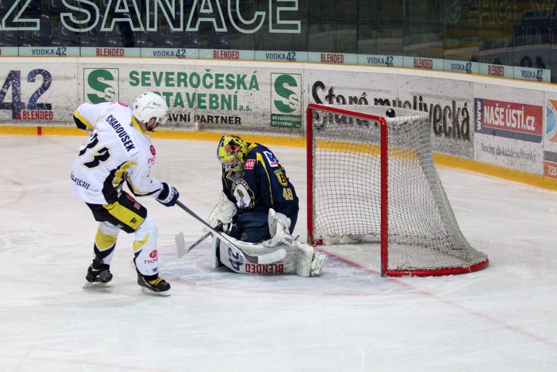 Na začátku třetí dvacetiminutovky si přesilovou hru vyzkoušeli také Ústečtí Lvi, farma chomutovských Pirátů tlaku domácích odolala. O překažení čistého konta Michaela Petráska se pokusil v sedmačtyřicáté minutě Roman Chlouba, jeho úmysly brankář Slovanu přečetl. Následně dostala Kadaň k dispozici druhou přesilovku, ale i druhé oslabení přečkal celek pod vedením Milana Skrbka a Tomáše Mareše bez úhony.