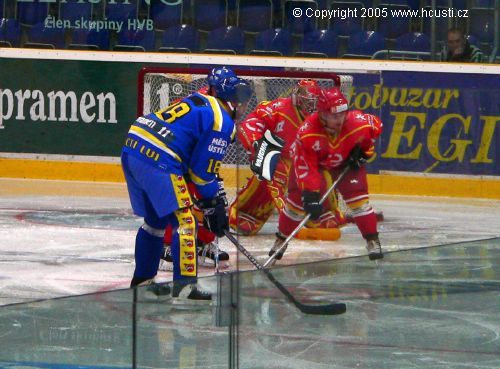 Branky a nahrávky: 54. Kysela (Mazanec, Pavlas) - 6. Kašík (Volráb), 12. Koudelka (Vondráček), 20. Valko (Vondráček), 59. Šeda. Rozhodčí: Florián - Hynčica, Šerý. Vyloučení: 8:9, navíc Pavlas (Ú) 10 min. NESP. Využití: 1:0. Diváci: 1000. Střely na branku: 31:16. Průběh utkání: 0:3, 1:3, 1:4.