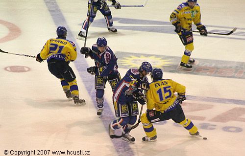 HC Slovan Ústí nad Labem: Přikryl - Novotný, Vágner, Houdek, Ficenc, Zeman, Evan, Pojkar, Zápotočný - Janků, Pazourek, Antoš - Míka, Nedorost, Liščák - Špirko, Martinec, Klimt - Šaffer, Mrázek, Hašek