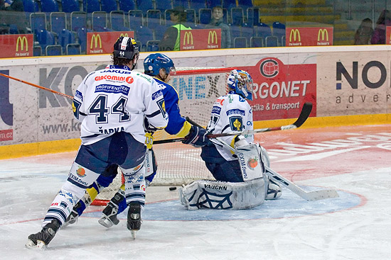 Nejvýraznější šanci úvodu poslední třetiny si připsali Havel s Novákem v nájezdu proti jedinému obránci. Havel volil střelu a Pinc podržel před dojíždějícím Novákem. Liberec se opět prosazoval v přesilové hře. Kašpařík po střele od modré puk sice zasunul, ale vedle branky. Vzápětí se blýskl Hunkes ve vyložené šanci před ležícím Zikmundem, puk se zázračně odrazil mimo. Výhodu jednoho muže v poli získali i domácí a předvedli v ní Liberci, jak se má využít a k tomu ještě přidat estetický účinek. Nádhernou kombinaci, v níž od modré přihrál Gýna Martincovi na hranici brankoviště, vyšperkoval ještě centr prvního útoku posunutím puku na Špirka, který kotouč za Pince protlačil a poslal tak domácí do dvoubrankového vedení. Liberec tím ztratil dost chuti a elánu do marného dobývání útočného pásma. Jiskřičku naděje ještě vykřesával Bartovič s Moravcem, ten pálil od modré. Vzápětí hrozil i Žabka, dorážet mohl Kašpařík. Čtyři minuty před koncem se do úniku dostal František Mrázek, na poslední chvíli za záchrannou brzdu zatáhl Rýgl. Mohutný domácí útočník tak dostal šanci najet proti Pincovi znovu, svůj nájezd ale neproměnil, zamíchal s pukem před brankou a ten odskočil mimo jeho dosah. V 58.minutě odvolali hosté brankáře, což umožnilo Mrázkovi trefit se do prázdné brány a uzavřít účet utkání na 4:1.