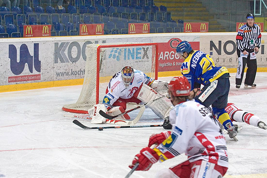 Branky a nahrávky: 12. Čaloun (Káňa), 13. Zápotočný (Novák) - 9. Moravec (Tomík), 14. Sekeráš (Štefanka), 19. Výborný (Štefanka), 24. Peterek (Korhoň), 24. Korhoň (Peterek), 26. Martynek (Peterek). Rozhodčí: Homola - Bádal, Pouzar. Vyloučení: 8:10, navíc Štefanka a Polanský (TŘI) 10 min. NESP. Využití: 2:0. Diváci: 3250. Střely na branku: 38:29. Průběh utkání: 0:1, 2:1, 2:6.