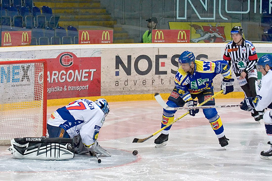 Branky a nahrávky: 10. Šagát (Hovorka), 21. Mrázek (Zeman), 23. Mrázek (Martinec), 24. Novák (Nedorost), 36. Nedorost (Hašek) - 58. Szturc (Mrázek). Rozhodčí: Fraňo - Bejček, Svoboda. Vyloučení: 8:8. Využití: 1:0. Diváci: 1027. Střely na branku: 45:35. Průběh utkání: 5:0, 5:1.