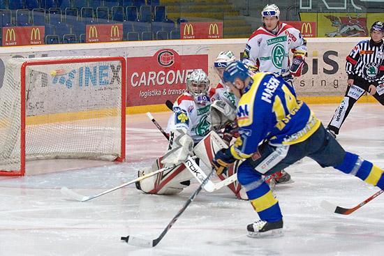 Ve 43. minutě se po Káňově přihrávce prosazoval před brankou Janků, ale Nikolov na poslední chvíli zatáhl za ruční brzdu. Domácí tak hráli další přesilovku, ale po Kloboučkově střele od modré při ní zazněla pouze tyčka. Tempo zápasu postupně uvadalo, hráči obou týmů se utápěli v množství nepřesností. V 53. minutě vybojoval u zadního mantinelu puk Novák, posunul na Nedorosta, který prudkou střelou z otočky vymetl horní růžek u bližší tyčky - 1:0. V závěrečné minutě převzal od Káni kotouč ve středním pásmu Janků a parádní kličkou do forhendu stanovil konečné skóre zápasu na 2:0.