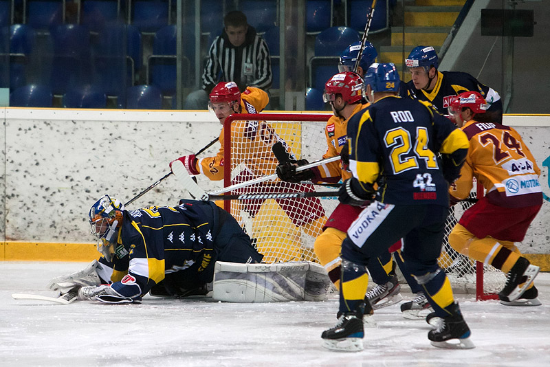 DAVIDA LUDVÍKA. Ludvík se dokázal nejlépe zorientovat a z mezikruží propálil vše, co mu stálo v cestě. Jihlava se mohla pokusit snížit stav o chvíli později díky přesilové hře. Během ní se ale nedokázala na stálejší dobu usadit v útočné třetině a střely žlutočervených hokejistů také nijak výrazně neohrozily svatyni Koutského. Sedm minut před koncem utkání zazvonila po akci domácích tyč Novotného klece a bezprostředně poté se za ní strhla i potyčka mezi Handlovským a Malcem, přičemž domácí hráč složil jihlavskou devadesát jedničku k zemi. Oba putovali za svůj prohřešek na dvě minuty k časoměřičům a hrálo se čtyři na čtyři, což ale stav neovlivnilo, neboť se aktéři na ledě pohybovali z jedné poloviny kluziště na druhou. Lvi pak ještě znepříjemňovali poslední minuty zápasu Novotnému, který se ve své svatyni ještě pěkně zapotil. Žádná branka už ale nepadla a žlutomodří si připsali na konto další výhru.
