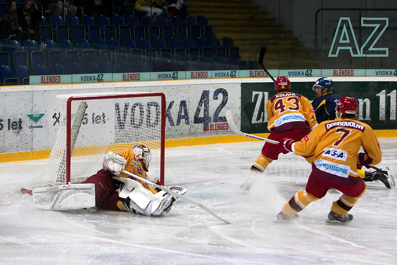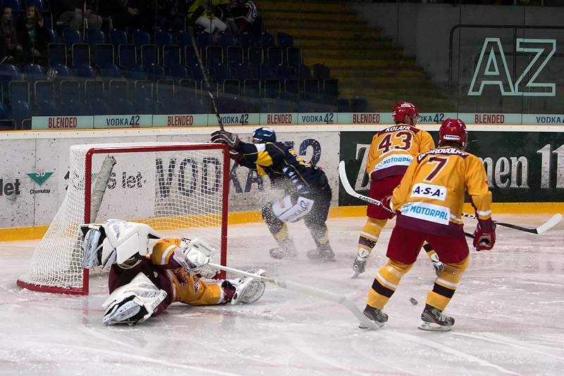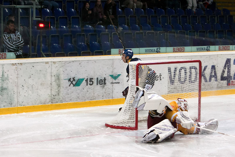 JAROSLAV ROUBÍK našel puk v útočném pásmu a naprosto ztrapnil defenzivu Dukly, když se prosmýkl mezi dvěma hráči a z pravého kruhu vyslal dělovku na nepřipraveného gólmana hostí, kterou se snažil blokovat ještě třetí jihlavský hokejista, jenže marně. Ústí pak ještě párkrát zahrozilo v obranném pásmu žlutočervených. Jedna z akcí dokonce skončila břevnem. Tým z Vysočiny již ve druhé periodě ústecké mužstvo nikterak neohrozil.