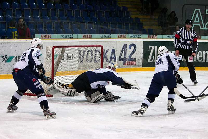 Branky a nahrávky: 31. Přeučil (Hořava, Rod), 48. Roubík (Poživil, Přeučil), 55. Kovář (Roubík, Daniel Boháč), 60. Čermák - 48. Pavel (Ruprecht, Jebavý), 56. Padělek (Karpov). Rozhodčí: Jílek - Bosák, Šmika. Vyloučení: 5:3. Bez využití. Diváci: 1 087. Střely na branku: 38:27 (6:6, 18:8, 14:13). Průběh utkání: 2:0, 2:1, 3:1, 3:2, 4:2.