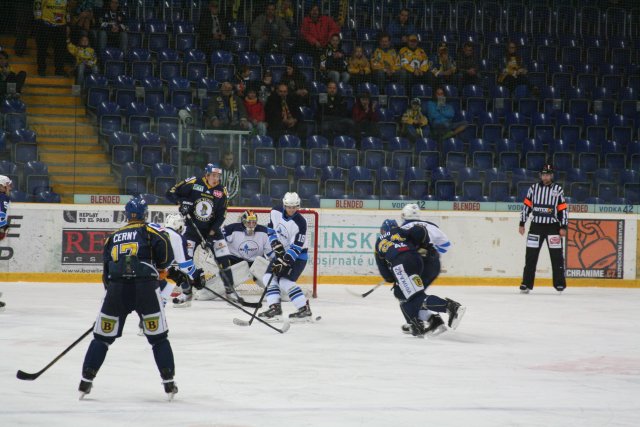 Branky a nahrávky: 11. Kloz (Sklenička), 20. Přeučil (Grin, Sklenička), 45. Roubík (Přeučil) – 3. Gerhát (Písařík, Sedláček), 9. Slavíček (Písařík), 13. Smolka (Bojer), 49. Majdan, 50. Andres (Smolka). Rozhodčí: Smitka – Čížek, Křivohlavý. Vyloučení: 3:6, navíc Tauš 10 min. [NESP], M. Tůma (oba MOS) OT do konce utkání [NESP]. Využití: 1:0. V oslabení: 0:1. Diváci: 776. Střely na branku: 48:33. Průběh utkání: 0:2, 1:2, 1:3, 3:3, 3:5.