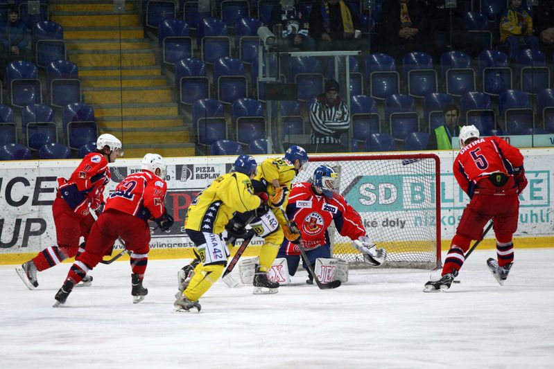 Oba celky byly útočně naladěny a o pohledné akce nebyla nouze. Stav na multimediální kostce se měnil znovu čtyři minuty před koncem třetí třetiny. Tentokrát se prosadil střelou z mezikruží Jaroslav Roubík a zajistil modrožlutým vedení 3:2.
