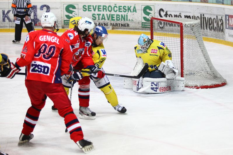 Ústecký Meidl zadržel protihráče a za tento prohřešek byl vyloučen. Tentokrát ale hokejisté z Vysočiny početní výhodu zužitkovali. Ladislav Gengel dorazil za záda Dlouhého odražený puk a srovnal stav na 1:1. Hra se přelévala ze strany na stranu. Bíločervení se usadili v útočném pásmu, ale jejich kombinace nebyly úspěšné.