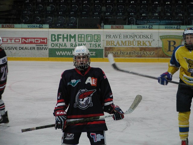 Úvod zápasu byl pod taktovkou hostů. Piráti lépe bruslili a byli lepší i v osobních soubojích. První branku duelu vstřelil Matyáš Svoboda, který si vybruslil před branku a střelou mezi betony překonal brankáře Havlíka. To běžela dvanáctá minuta. O třiadvacet sekund později byl stav 0:2. Jindra našel přesnou přihrávkou Jaroslava Kulicha, který se trefil přesně pod horní tyčku. Domácí gólman byl na jeho střelu krátký. Největší šanci domácích měl kapitán Michal Vico, ale jeho pokus se nevešel mezi tři tyče. Hosté byli lepším týmem. V čase 18:55 nastala totožná situace jako před prvním gólem. Vytejček nedůrazně přistoupil k Filipu Paličkovi, který nabral rychlost, vybruslil si před branku a zakončil mezi nohy. Po první třetině platil stav 0:3.