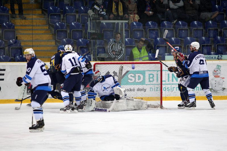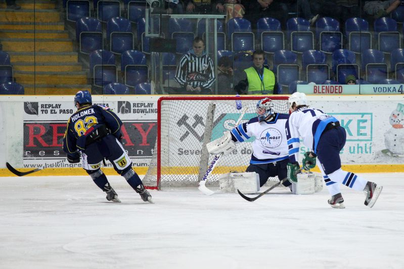 Nejvíce šancí ve třetí periodě měli na hokejkách žlutomodří při přesilové hře, do „černého“ se však netrefili. Zato Mostečtí ještě 10 minut před koncem snížili na 5:2. Smolka přihrál do jízdy rozjetému Marku Zavřelovi, a ten našel skulinu mezi betony Dlouhého.